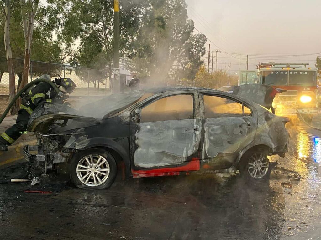 Un incendio vehicular en la colonia Revolución dejó un automóvil Chevrolet Sonic totalmente consumido por las llamas. No se reportaron lesionados.