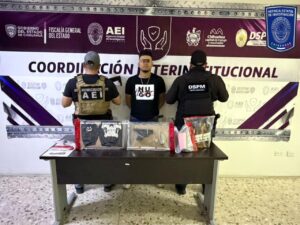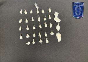En un operativo realizado por la Agencia Estatal de Investigación, dos hombres fueron arrestados en la colonia Benito Juárez por posesión de metanfetamina en distintas cantidades.