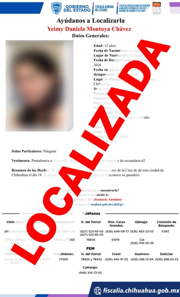 Localizan a tres adolescentes y una mujer adulta reportadas como desaparecidas en Chihuahua
