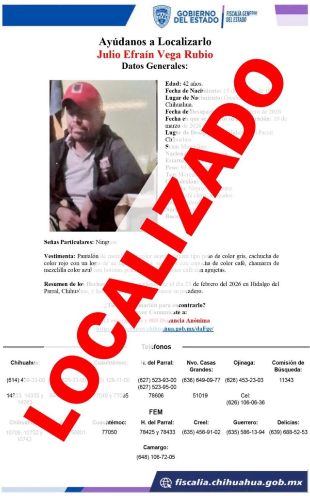 Localizan a hombre reportado como ausente en Parral, Durango