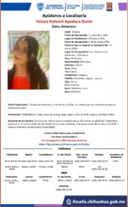Ayuda a encontrar a Sian Tadeo Baca Apodaca: desaparecido en Chihuahua