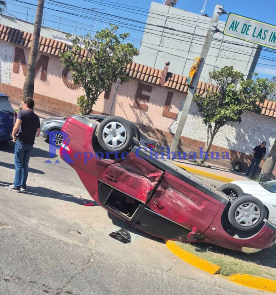 De sur a norte sobre la avenida De las Industrias, una mujer que circulaba a bordo de una camioneta Chevrolet Track de color blanco, al intentar dar vuelta a la izquierda para tomar la calle Mercurio, impactó a un joven que viajaba en un Nissan Tiida de color guinda al cortarle el paso, provocando que volcara y quedara con las cuatro llantas hacia arriba.