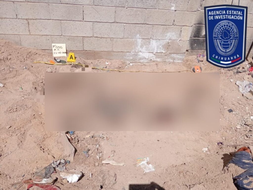 Durante el operativo, se descubrió en el patio trasero de la vivienda una fosa clandestina de 63 centímetros de profundidad que contenía un cuerpo de sexo indeterminado. El cuerpo fue trasladado al Servicio Médico Forense para realizar estudios periciales que determinarán la causa y el tiempo de muerte, así como la identificación de la víctima.