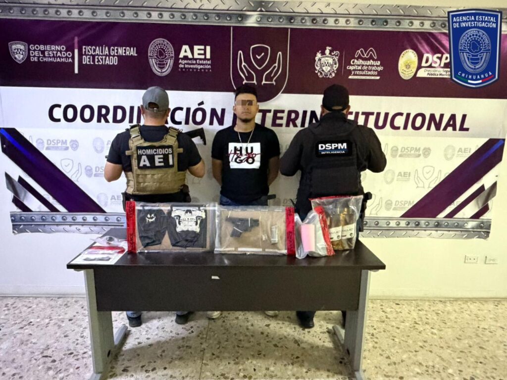 Elementos de la Agencia Estatal de Investigación de la Fiscalía de Distrito Zona Centro detuvieron a Carlos Alejandro V. D., un hombre de 22 años, la noche de ayer viernes en Chihuahua. La detención se realizó en la Avenida Transformación, en el cruce con calle Molino Salveiro, en el Fraccionamiento Molino de Agua.