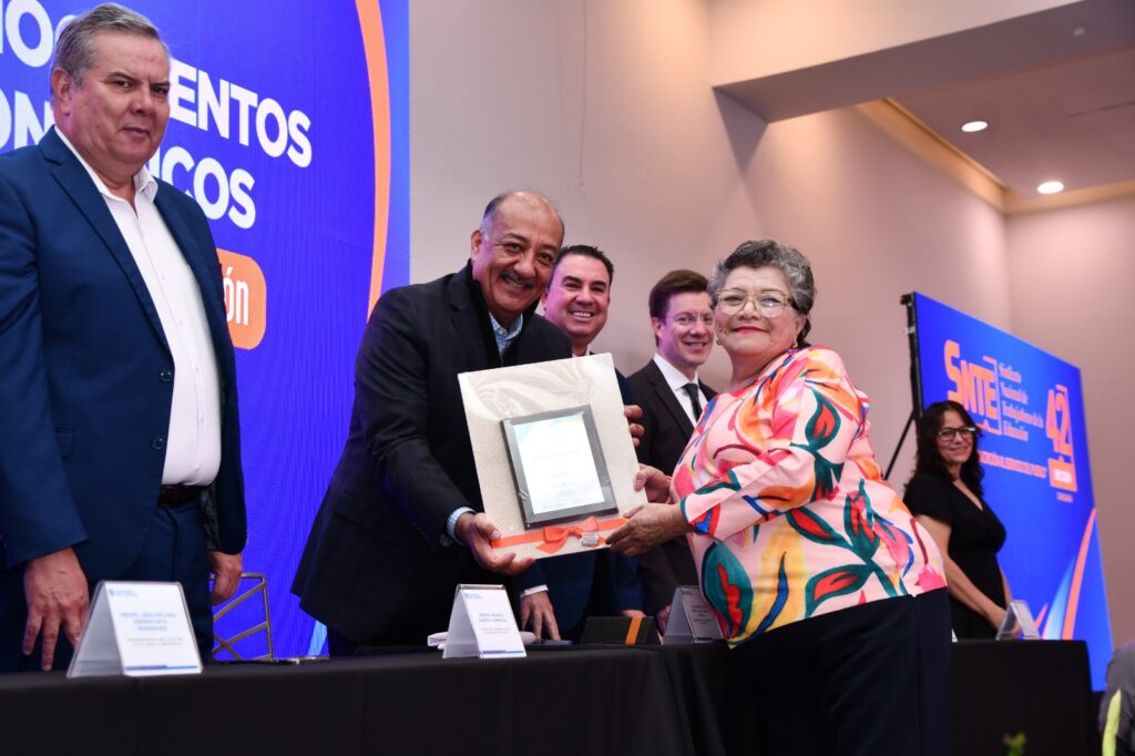 Manuel Quiroz Carbajal, secretario general de la Sección 42 del SNTE, reconoció la labor de los galardonados y agradeció el apoyo de la administración estatal, liderada por la gobernadora Maru Campos, en la mejora de las prestaciones del magisterio chihuahuense.