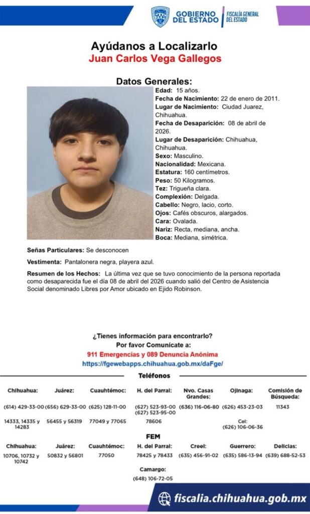 Desaparece Jesús Adrián Limones Serrato en Chihuahua: Ayuda para localizarlo