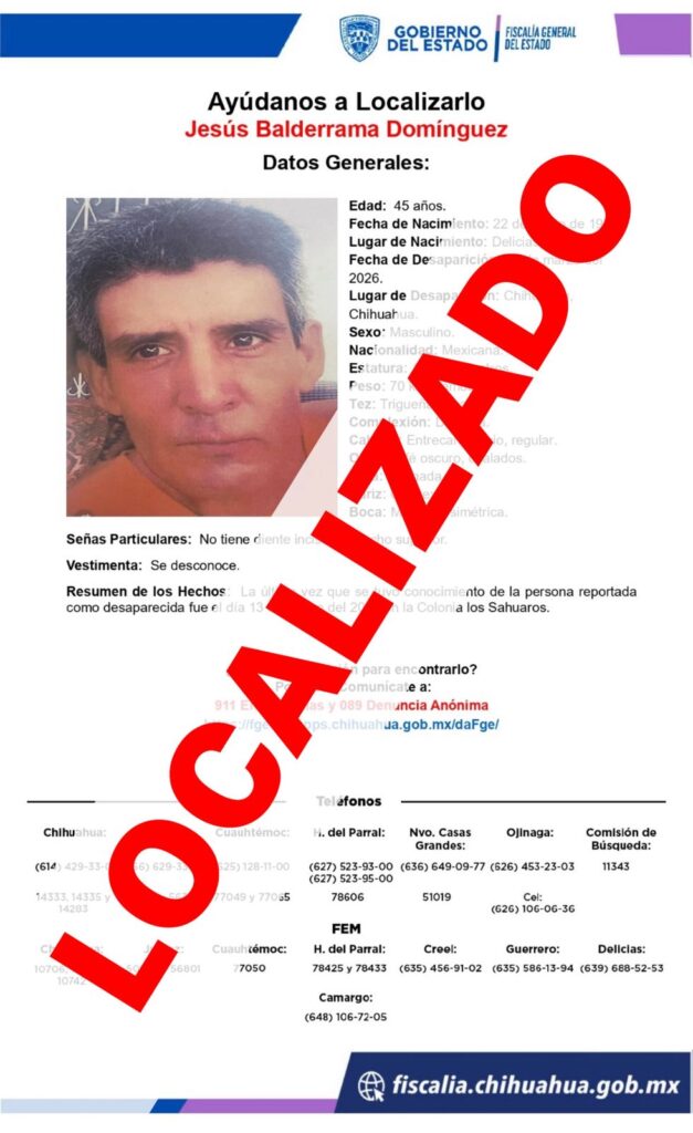 La Fiscalía de Distrito Zona Noroeste localizó sana y salva a una adolescente reportada como desaparecida en Nuevo Casas Grandes, tras una intensa búsqueda.