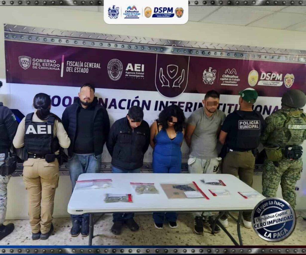 Un operativo conjunto en la colonia Nombre de Dios resultó en la detención de cuatro personas, a quienes se les encontraron drogas y un arma de fuego. Las autoridades continúan investigando.