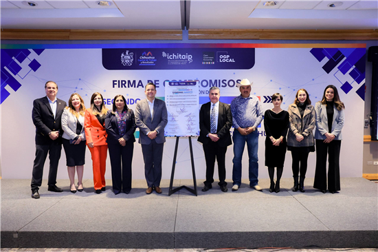 El alcalde de Chihuahua, Marco Bonilla, firma compromisos del Segundo Plan de Acción de Gobierno Abierto, buscando mejorar la transparencia y la participación ciudadana.
