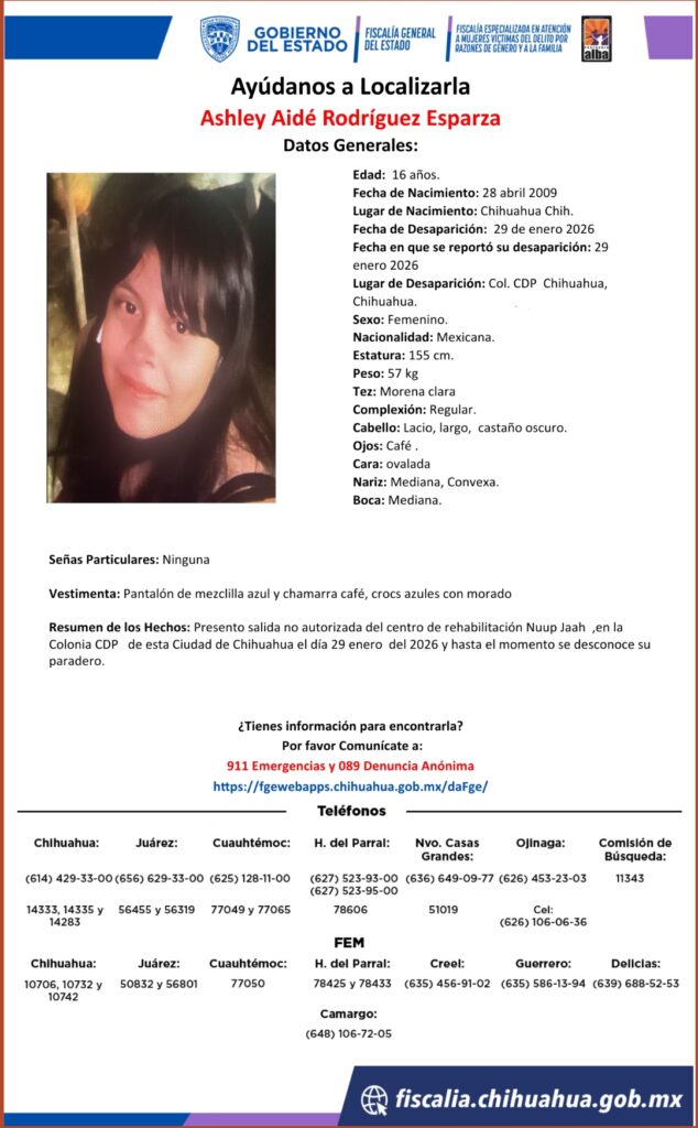 La desaparición de Ashley Aidé Rodríguez Esparza ha conmocionado a la comunidad de Chihuahua. Las autoridades continúan la búsqueda y piden apoyo a la ciudadanía.