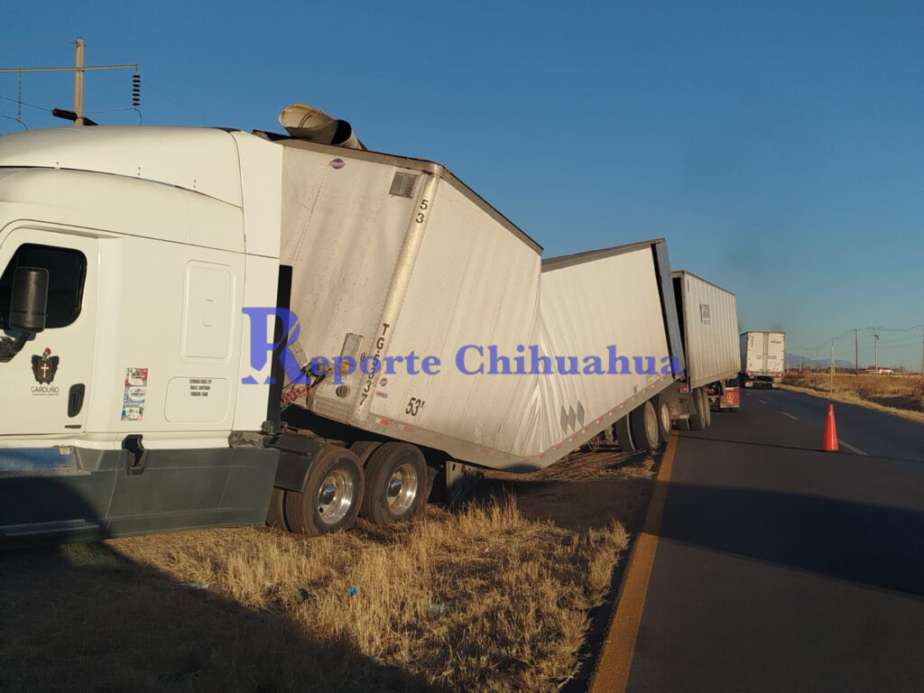 Un chofer de tráiler evitó una colisión en la carretera Chihuahua-Juárez, resultando en la ruptura de la caja del vehículo. Afortunadamente, el conductor salió ileso.