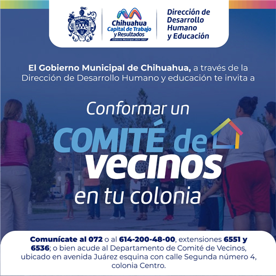 El Gobierno Municipal de Chihuahua invita a los vecinos a crear un Comité de Vecinos para mejorar la atención a sus necesidades y fortalecer la participación ciudadana.