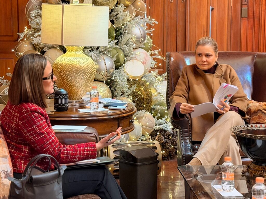 La gobernadora Maru Campos y la magistrada Marcela Herrera revisan proyectos de colaboración entre los poderes Ejecutivo y Judicial en Chihuahua para fortalecer la justicia.