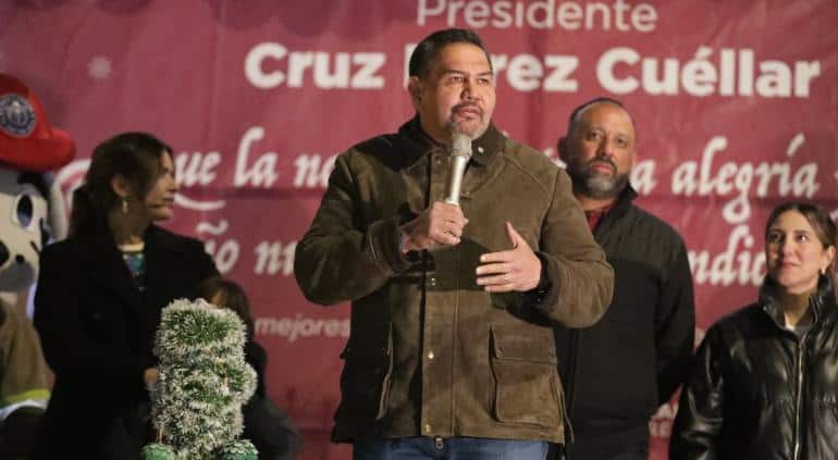 El presidente municipal Cruz Pérez Cuéllar encendió el árbol y luces navideñas en el Parque Borunda, un evento que reunió a familias juarenses en un ambiente festivo.