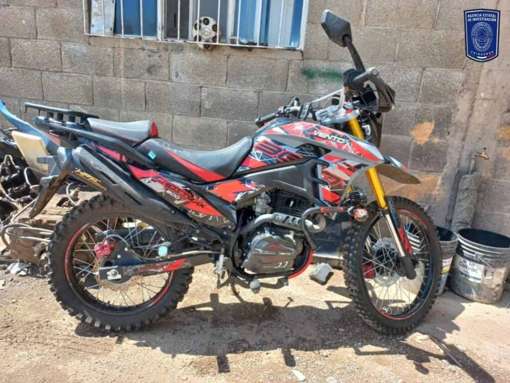 La Agencia Estatal de Investigación recuperó una motocicleta Vento 2025 robada en Cuauhtémoc. El vehículo fue localizado en un domicilio y se investiga el caso.
