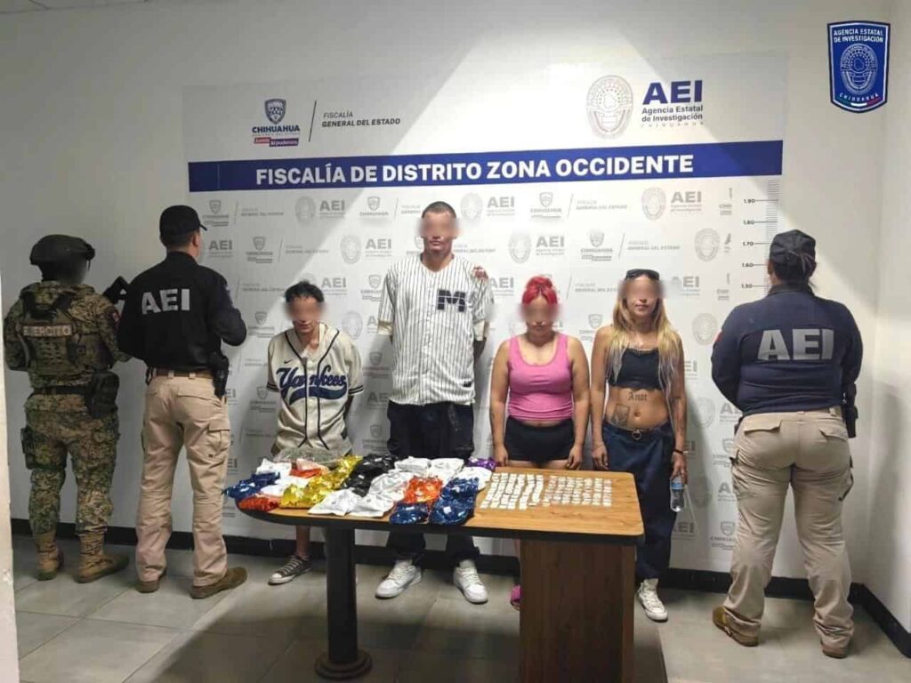 La Agencia Estatal de Investigación y la Defensa Nacional detuvieron a cuatro personas en Cuauhtémoc, asegurando drogas y efectivo en un cateo en la colonia Reforma.