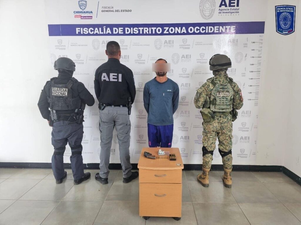 La AEI detuvo a Héctor Raúl M. G. por daños y posesión ilegal de un arma de fuego en el ejido Napavechi, Cuauhtémoc. Los hechos ocurrieron tras un reporte de disparos.
