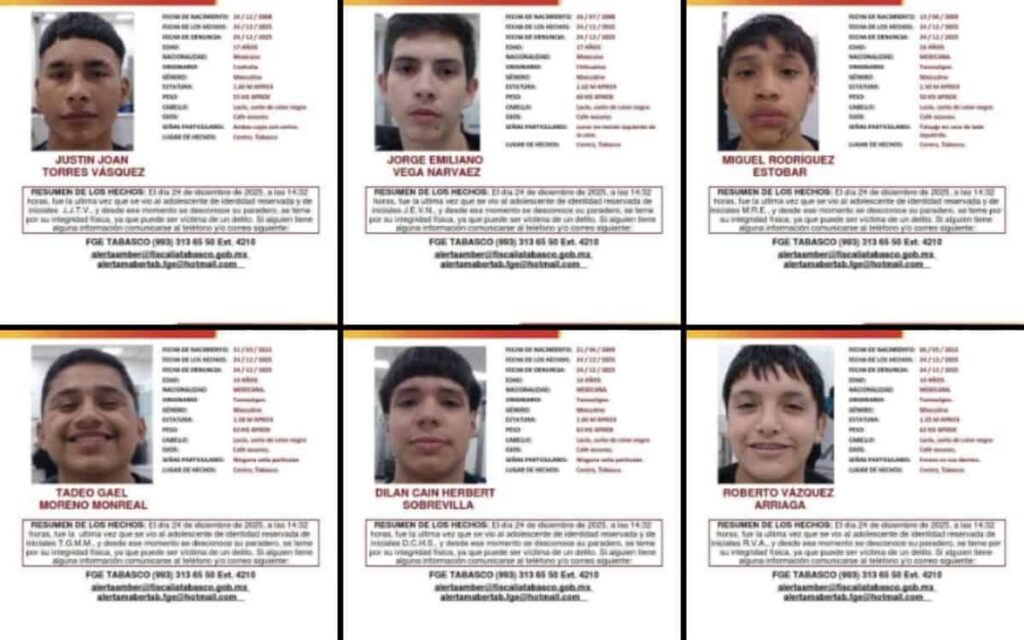 Seis adolescentes fueron reportados como desaparecidos en Tabasco, lo que llevó a la activación de la Alerta Amber por parte de la Fiscalía General del Estado para su búsqueda y localización.