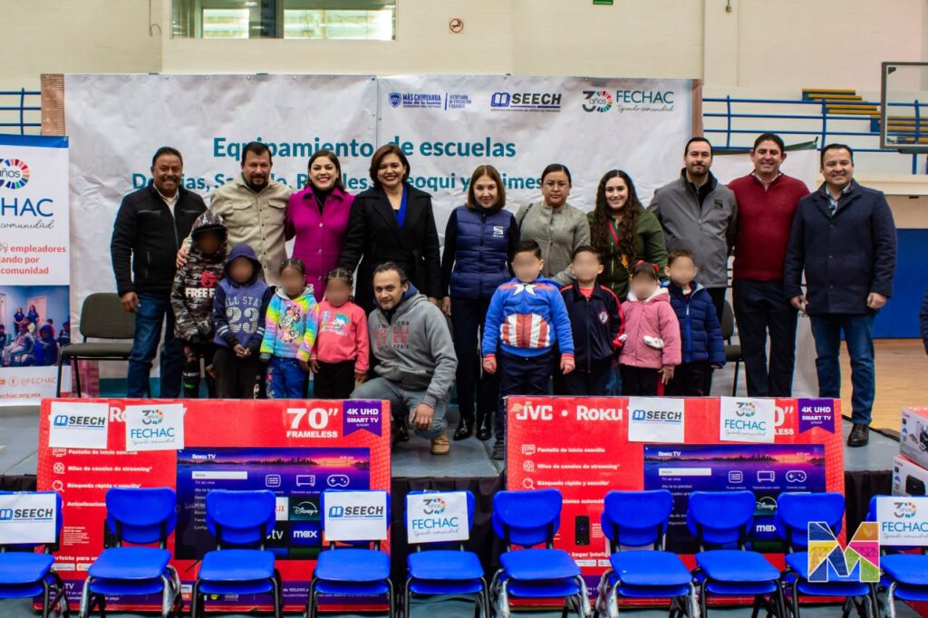 Dieciséis escuelas de Meoqui se benefician con equipamiento gracias a una alianza entre el Gobierno del Estado y FECHAC, mejorando la educación en la región.