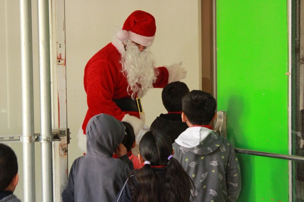 La Secretaría de Hacienda celebra la Navidad con la visita de Santa Claus y El Grinch, brindando alegría a los hijos de los trabajadores en un evento especial.