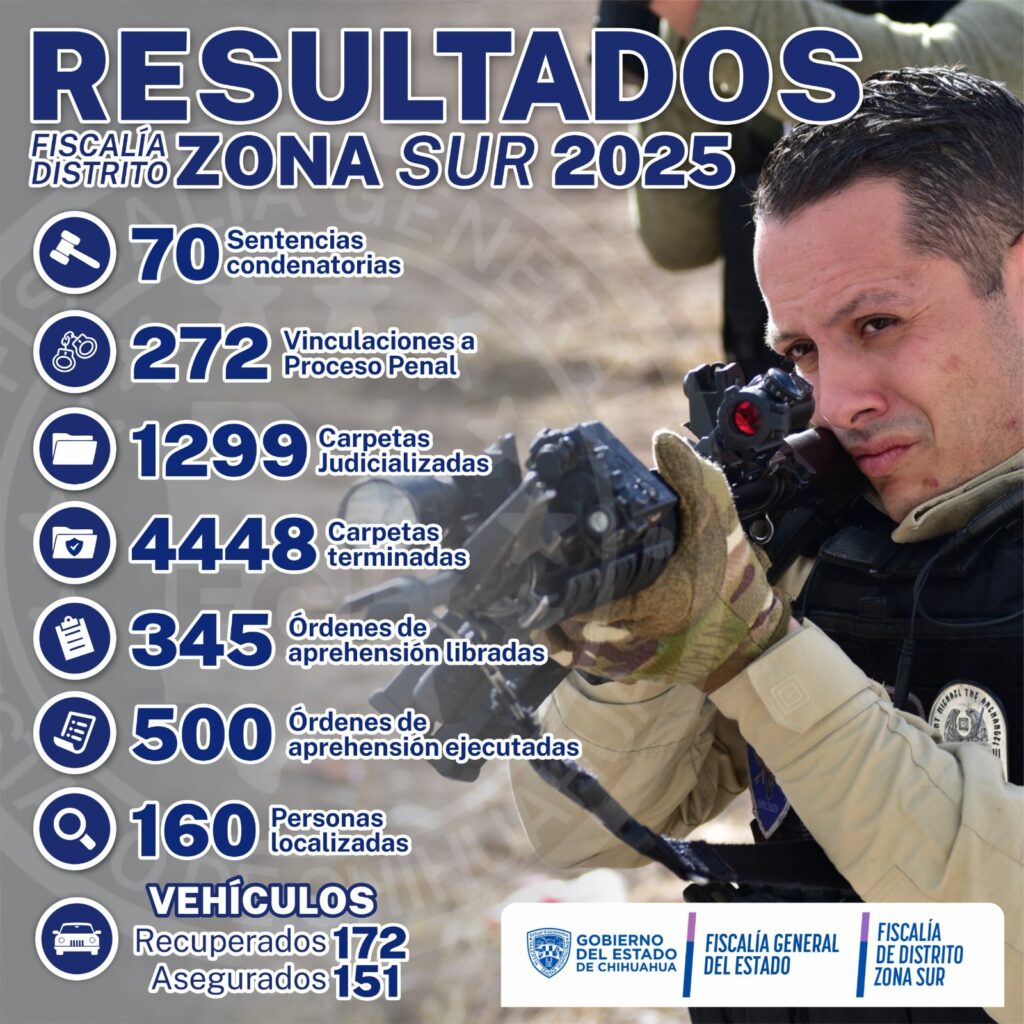 La Fiscalía de Distrito Zona Sur reporta 70 sentencias y 272 imputados vinculados a proceso en 2025, destacando su labor en la procuración de justicia.
