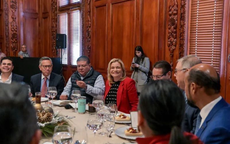 La gobernadora Maru Campos realizó un brindis navideño en Palacio de Gobierno, agradeciendo a su gabinete por su esfuerzo y deseando salud y paz para el próximo año.