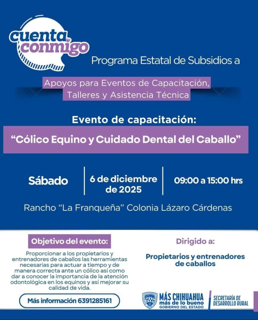 Este sábado 6 de diciembre, se realizará una capacitación gratuita sobre cólico equino y cuidado dental en Meoqui, abierta a todos los interesados en mejorar la atención a sus caballos.