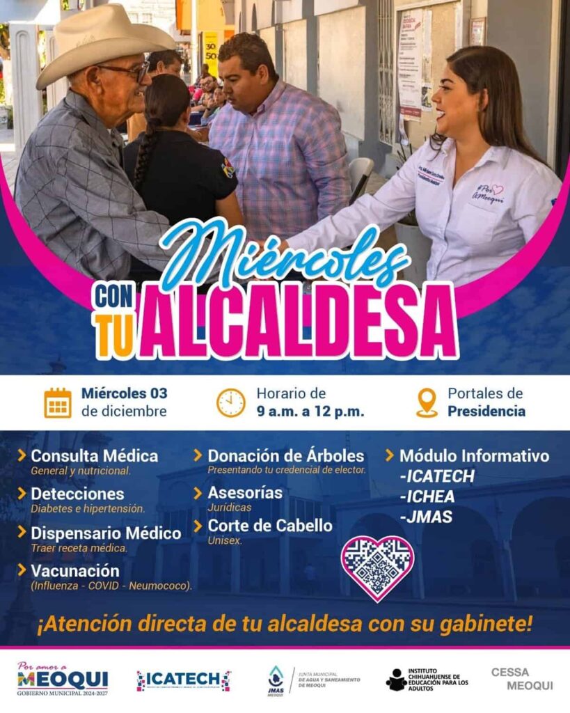 La Arq. Miriam Soto y su gabinete atenderán a la ciudadanía sin cita previa el 3 de diciembre en los Portales de la Presidencia Municipal, ofreciendo vacunación y servicios gratuitos.