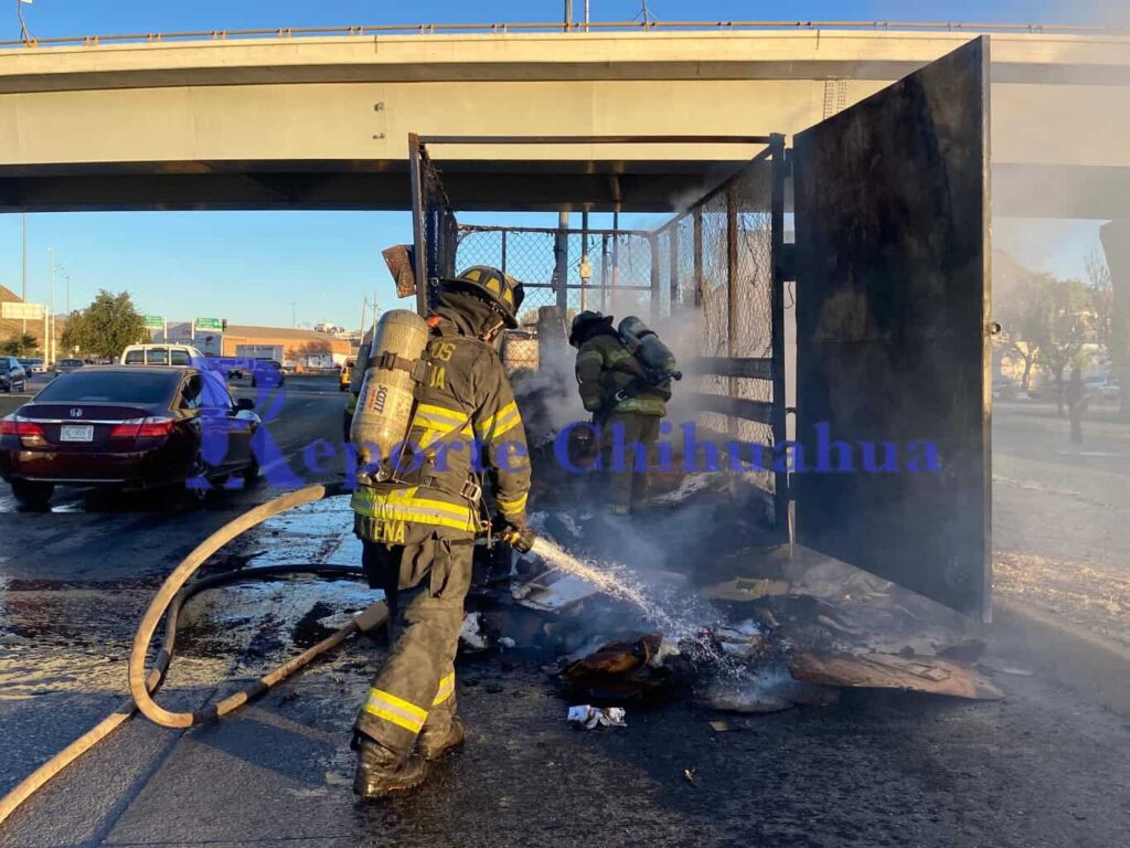 Un incendio se registró en una traila en la carretera Chihuahua-Delicias. Bomberos y Guardia Nacional atendieron la emergencia sin reportar heridos.