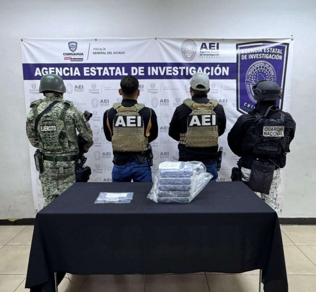 Agentes de la AEI detuvieron a dos hombres en Ciudad Juárez por posesión de casi cuatro kilos y medio de cocaína. La detención se realizó en colaboración con la Guardia Nacional.
