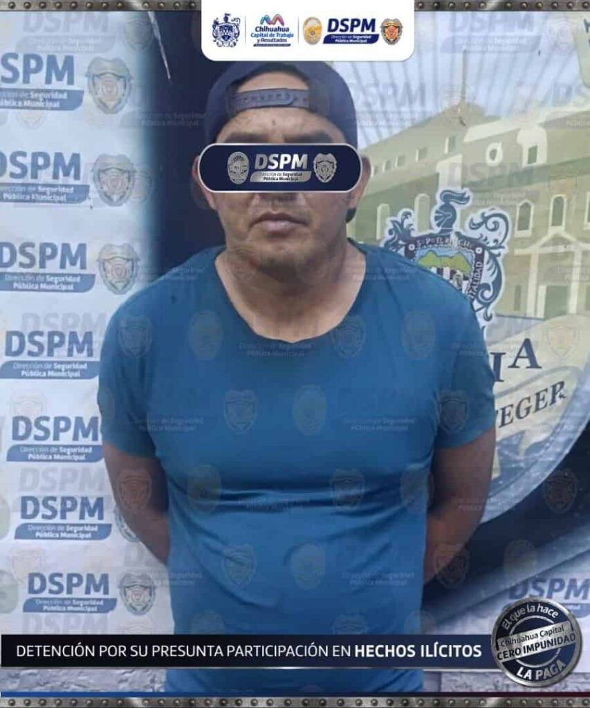 Un hombre de 34 años fue detenido en Chihuahua por delitos contra la salud y tenía una orden de aprehensión por robo de vehículo. La policía lo sorprendió con droga en su poder.