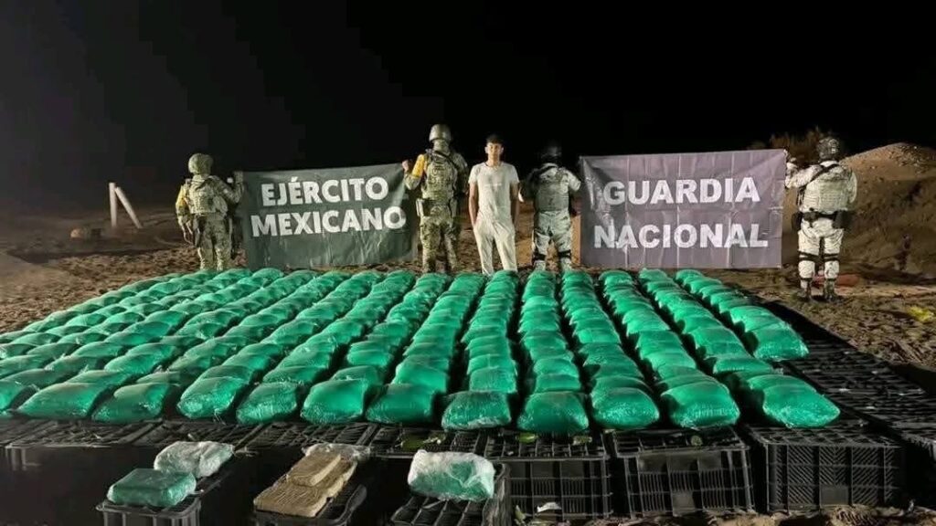 Un operativo conjunto en Sonora resultó en la incautación de más de una tonelada de droga sintética, incluyendo metanfetamina y fentanilo, y la detención del conductor del camión.