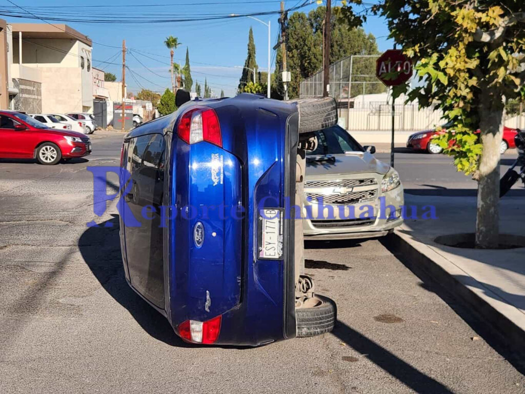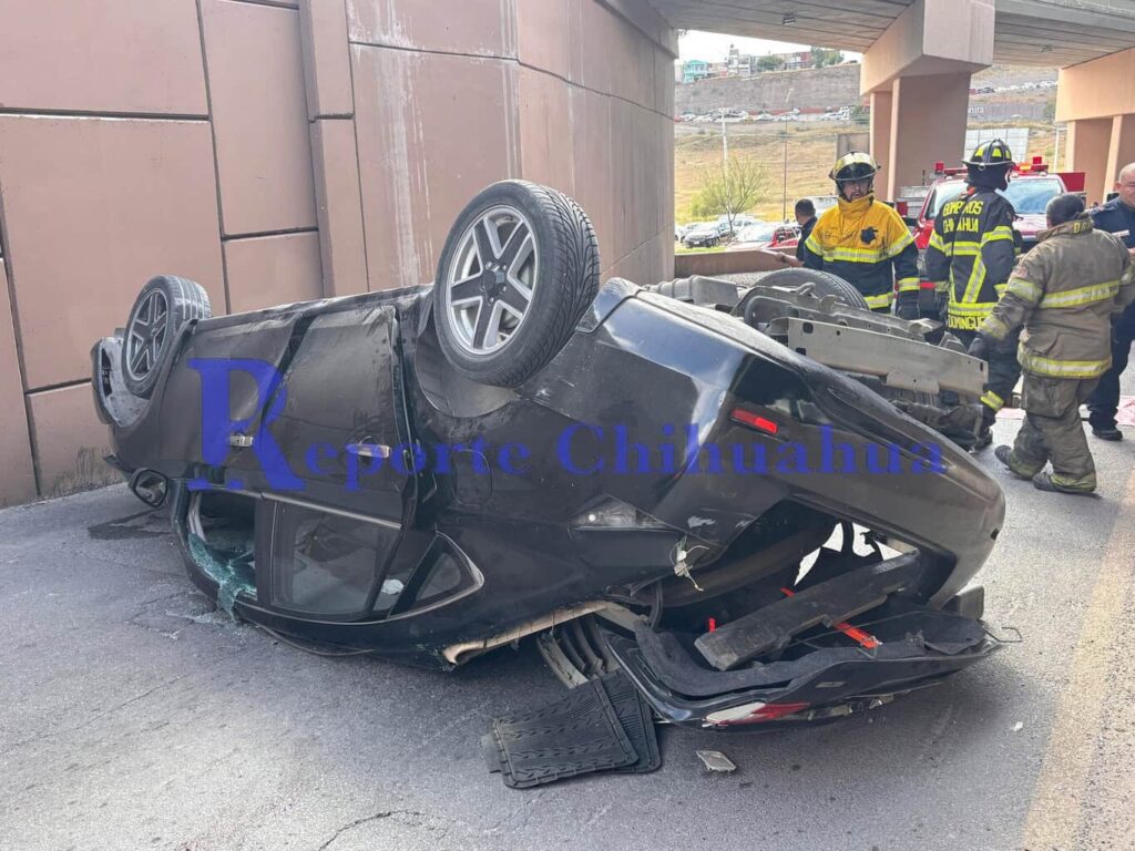Una mujer de 58 años sufrió una volcadura en Chihuahua. La conductora fue atendida por paramédicos y no requirió hospitalización tras el incidente.
