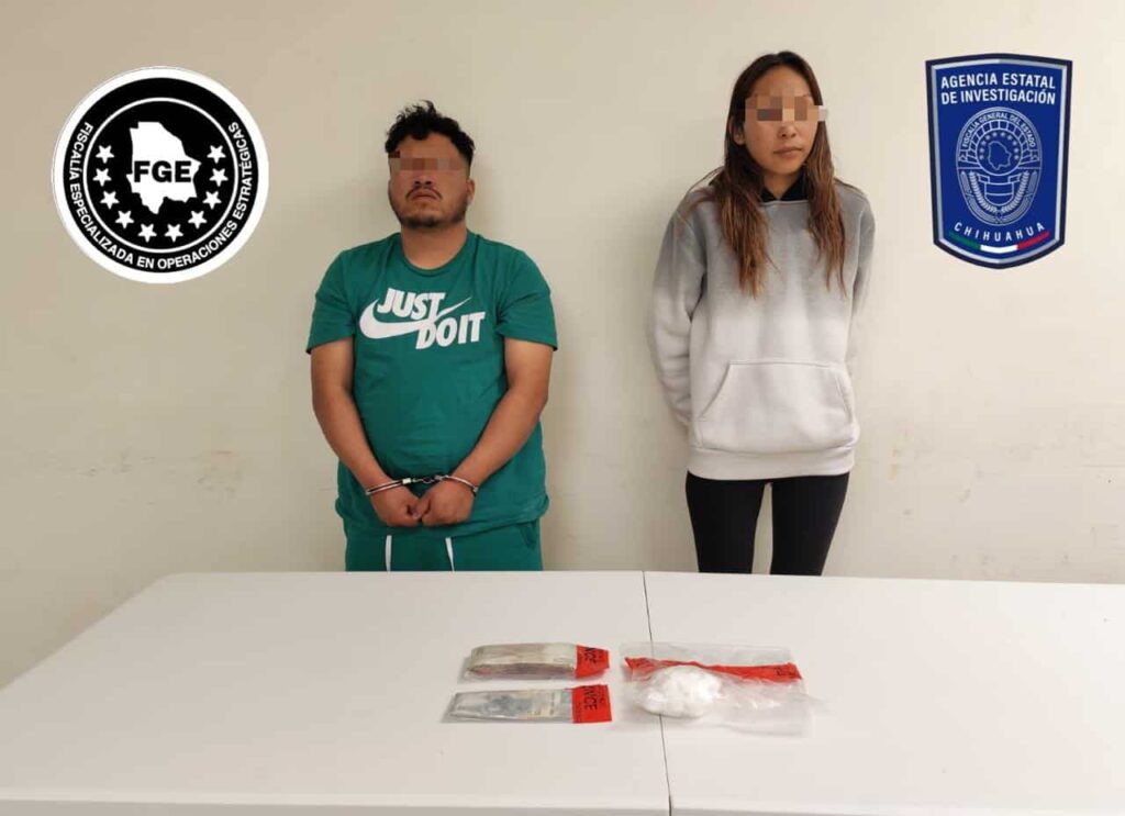La Fiscalía Especializada en Operaciones Estratégicas detuvo a un hombre y una mujer en posesión de narcóticos en Ciudad Juárez. La acción se realizó durante investigaciones por otros delitos.