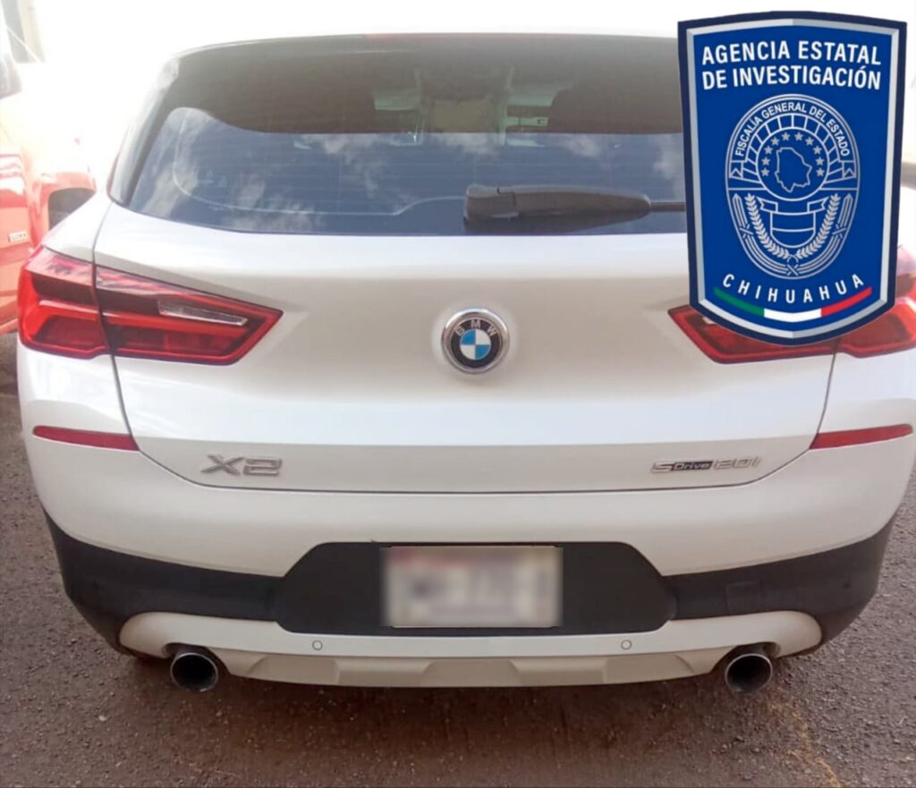 La Agencia Estatal de Investigación asegura un BMW con reporte de robo en Hidalgo del Parral. La persona involucrada demostró ser compradora de buena fe.