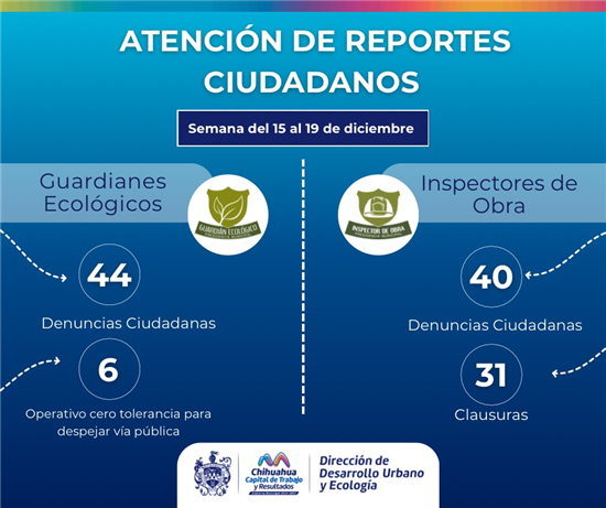 El Gobierno Municipal de Chihuahua informa sobre 209 inspecciones realizadas por Guardianes Ecológicos en una semana, reafirmando su compromiso con la protección ambiental.