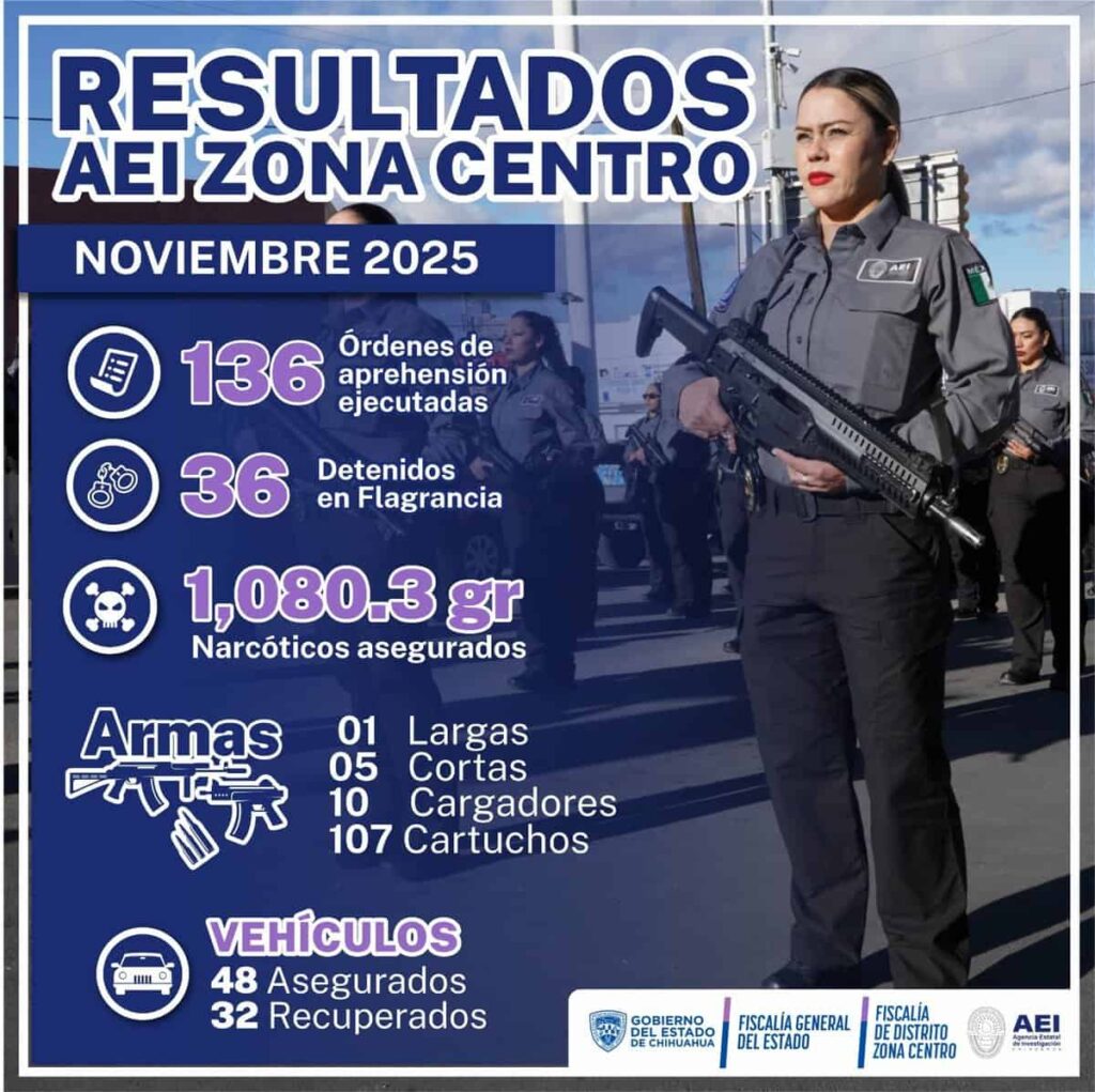 La Agencia Estatal de Investigación reporta una disminución en la incidencia delictiva en Ciudad Juárez durante noviembre, con importantes aseguramientos de armas y drogas.