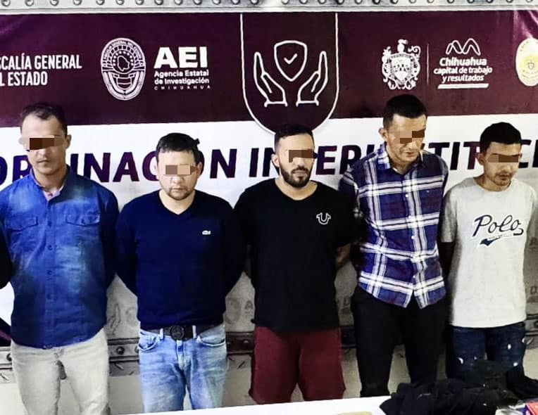 Cinco hombres fueron aprehendidos en Chihuahua por su participación en un robo y secuestro exprés. La investigación fue realizada por la AEI y la DSPM.