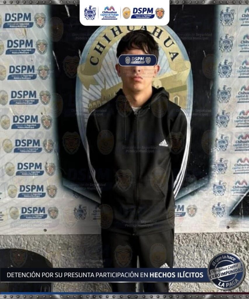 La Secretaría de Seguridad Pública del Estado detuvo a Eder Antonio Z. R. en Ciudad Juárez, asegurándole 14 envoltorios de presunta marihuana durante una operación de vigilancia.