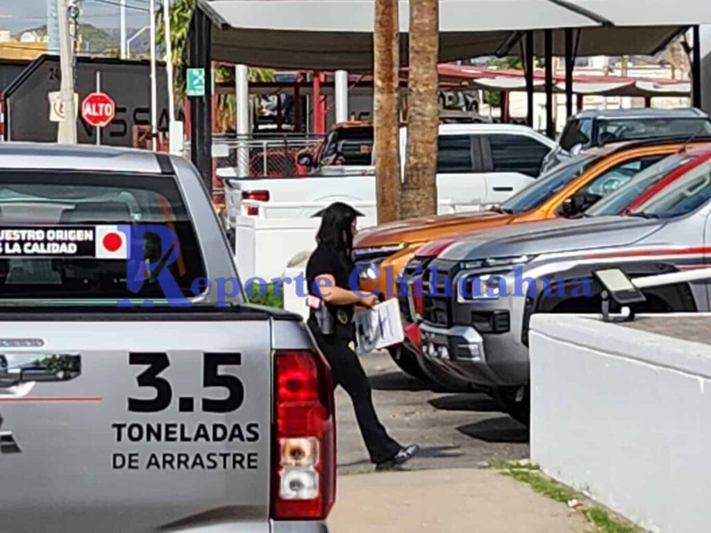 La Fiscalía y Seguridad Pública realizan diligencias en Mitsubishi tras el robo de dos vehículos. Se investiga la situación interna de la agencia en Chihuahua.
