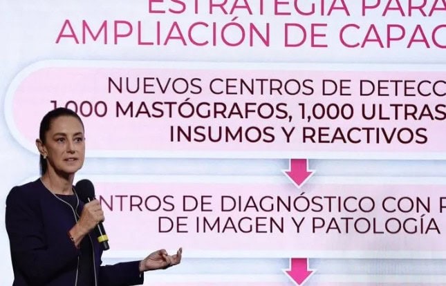 Sheinbaum explicó que actualmente hay 656 mastógrafos operando en el sistema público, por lo que el Gobierno decidió adquirir mil mastógrafos y mil ultrasonidos adicionales entre 2026 y 2027.