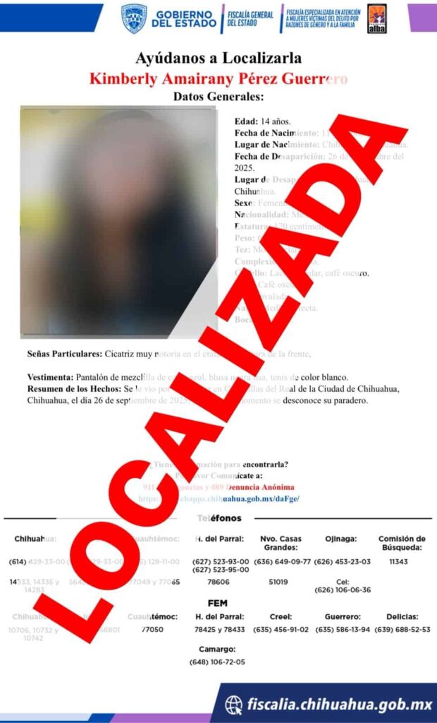 La Fiscalía Especializada localizó a dos adolescentes reportadas como ausentes en Chihuahua. Ambas se encuentran sanas y afirman que su ausencia fue voluntaria.