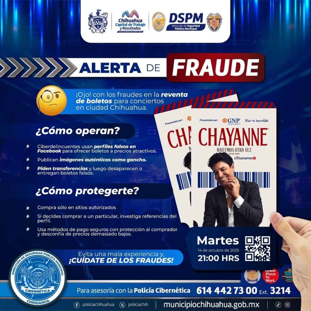 La Policía Cibernética de Chihuahua advierte sobre posibles fraudes en la compra de boletos de reventa para conciertos masivos. Se recomienda tomar precauciones al adquirir entradas.