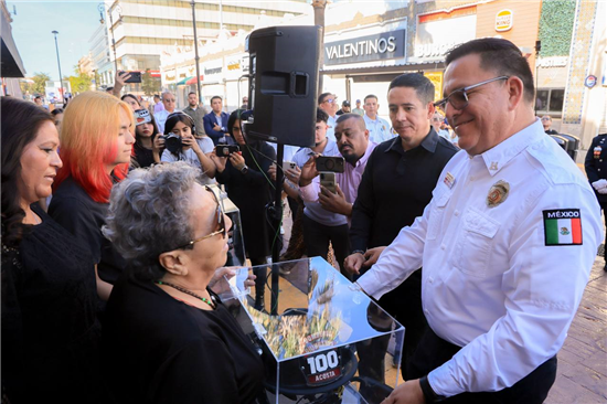 Autoridades de Chihuahua rinden homenaje a los bomberos Jorge Remedios Guzmán y Humberto Acosta, quienes perdieron la vida en el cumplimiento de su deber en 2006.