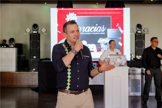 El alcalde Marco Bonilla homenajea a los bomberos de Chihuahua con un convivio, reconociendo su labor y premiando al bombero del año, Erick Márquez.