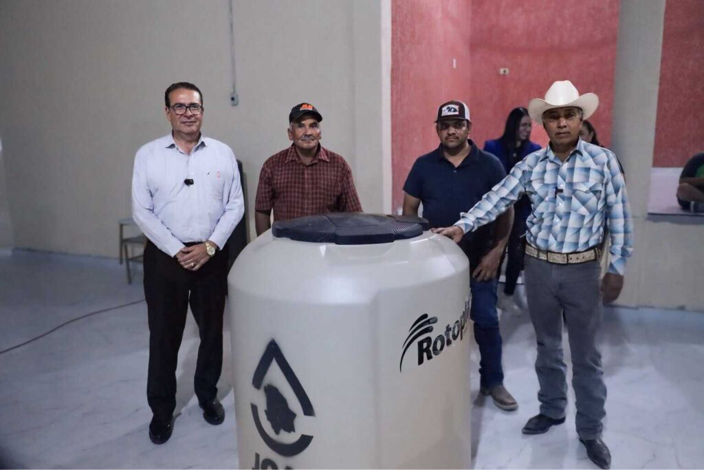 El Gobierno del Estado de Chihuahua, a través de la JCAS, distribuyó tinacos y garrafones a 40 familias de Alta Vista para mejorar el almacenamiento de agua.