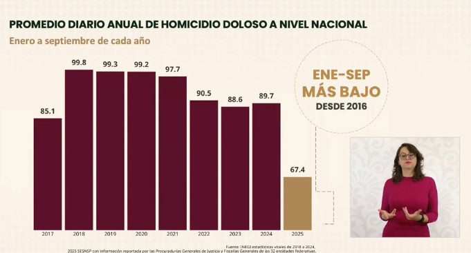 El Gobierno reporta una disminución del 32% en homicidios durante el primer año de Claudia Sheinbaum, con más de 34 mil detenidos y 283 toneladas de droga confiscadas.