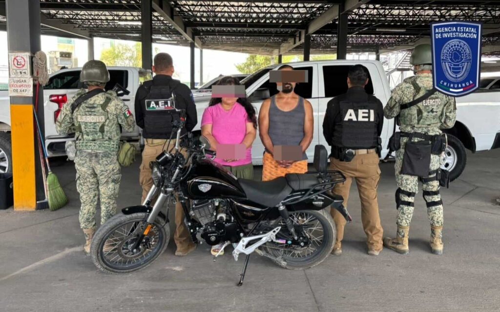 Agentes de la AEI y el Ejército detuvieron a César Ramón E. E. y Gabriela E. E. en Ciudad Juárez por posesión de vehículo robado y resistencia a la autoridad.