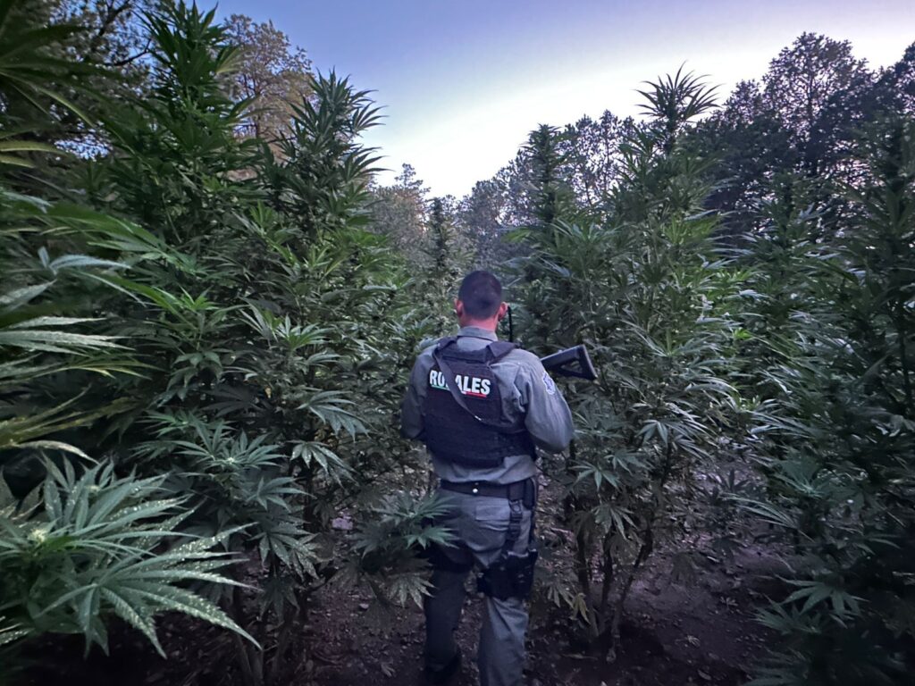 La Secretaría de Seguridad Pública del Estado destruyó más de 410 mil plantas de marihuana en Guerrero, erradicando casi 104 mil metros cuadrados de sembradíos en dos jornadas operativas.