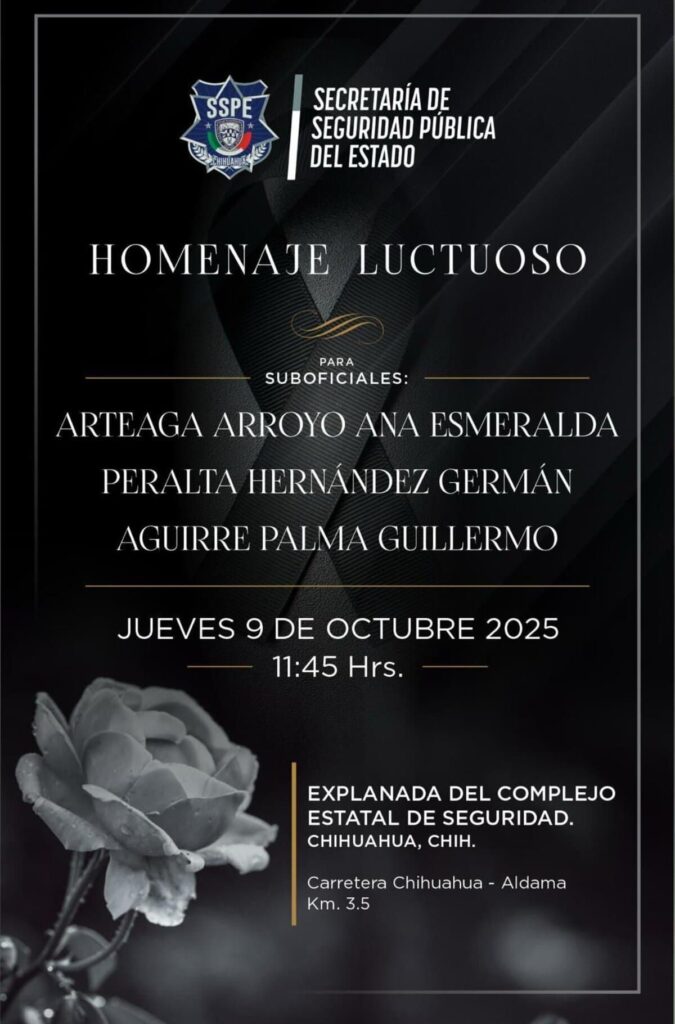 Mañana se llevará a cabo un homenaje luctuoso en Moris para honrar a los policías de la SSPE abatidos en una emboscada. Se espera la presencia de autoridades y familiares.